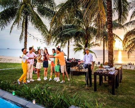 Trưa: Đoàn dùng bữa trưa tại nhà hàng KDL Tà Cú dưới chân núi. Tại đây, quý khách có thể thư giãn thưởng thức món giải khát thanh nhiệt, nổi tiếng Bình Thuận: mủ trôm đường phèn hoặc mua làm quà cho người thân. Chia tay KDL, xe đưa Quý khách tiếp tục lộ trình đến thiên đường resort Mũi Né. Đoàn nhận phòng nghỉ ngơi. Tự do tắm biển, thư giản tại Resort.